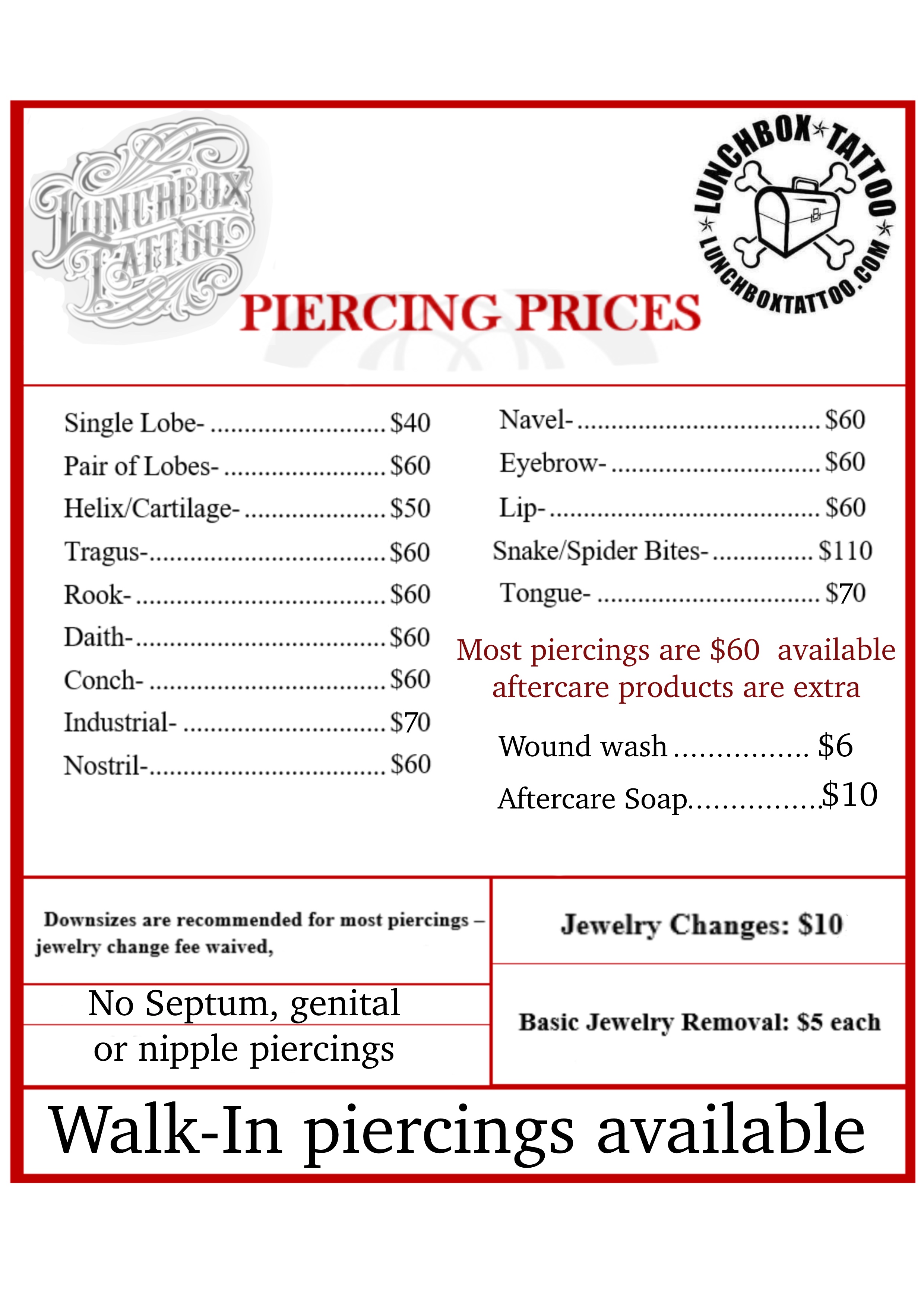A look at our gallery shows that we offer beautiful artistic tattoos of all shapes, sizes, and styles. LUNCHBOX TATTOO has won multiple awards for our work, including the cover of Tattoo Magazine and several consecutive years of Best of the Fox. We pride ourselves in maintaining optimal cleanliness as we aim to give each client the best experience possible. Check us out by scheduling an appointment or stopping by- we welcome walk-ins too.
